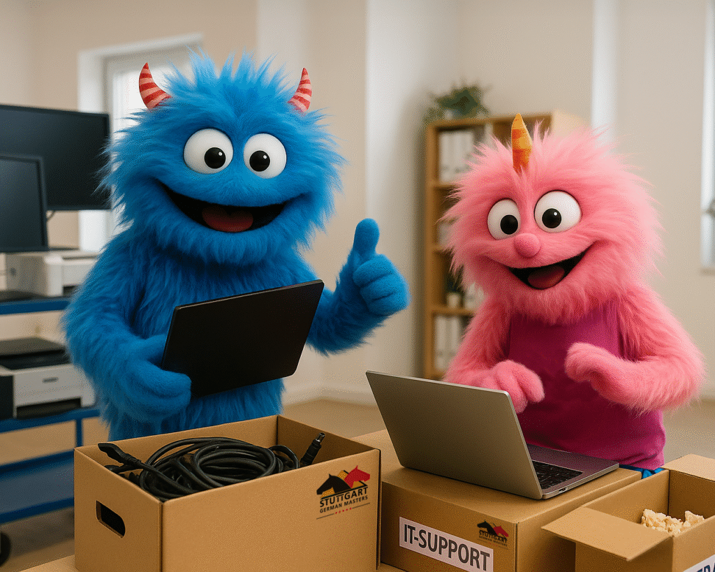 Und natürlich mit im Gepäck: unsere charmanten Digitalisierungsbotschafter DIGGI & DOTTY, die das Projekt mit Begeisterung und ihrem typischen Augenzwinkern begleitet haben. Ob in der Vorbereitung, während der heißen Produktionsphase oder beim Abschied – die beiden Plüschfiguren sorgten für Aufmerksamkeit und gute Laune im Redaktionsteam.